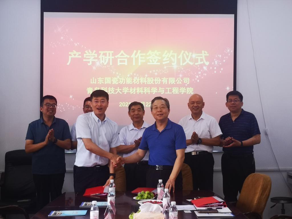 6月22日,公司与山东国瓷功能材料股份有限公司(简称“国瓷股份”)产学研合作签约仪式在203会议室举行。国瓷股份董事、副总经理宋锡滨、人力资源总监李银果、技术中心常务副总经理朱恒等出席活动,公司领导班子成员及教研室主任参加仪式。