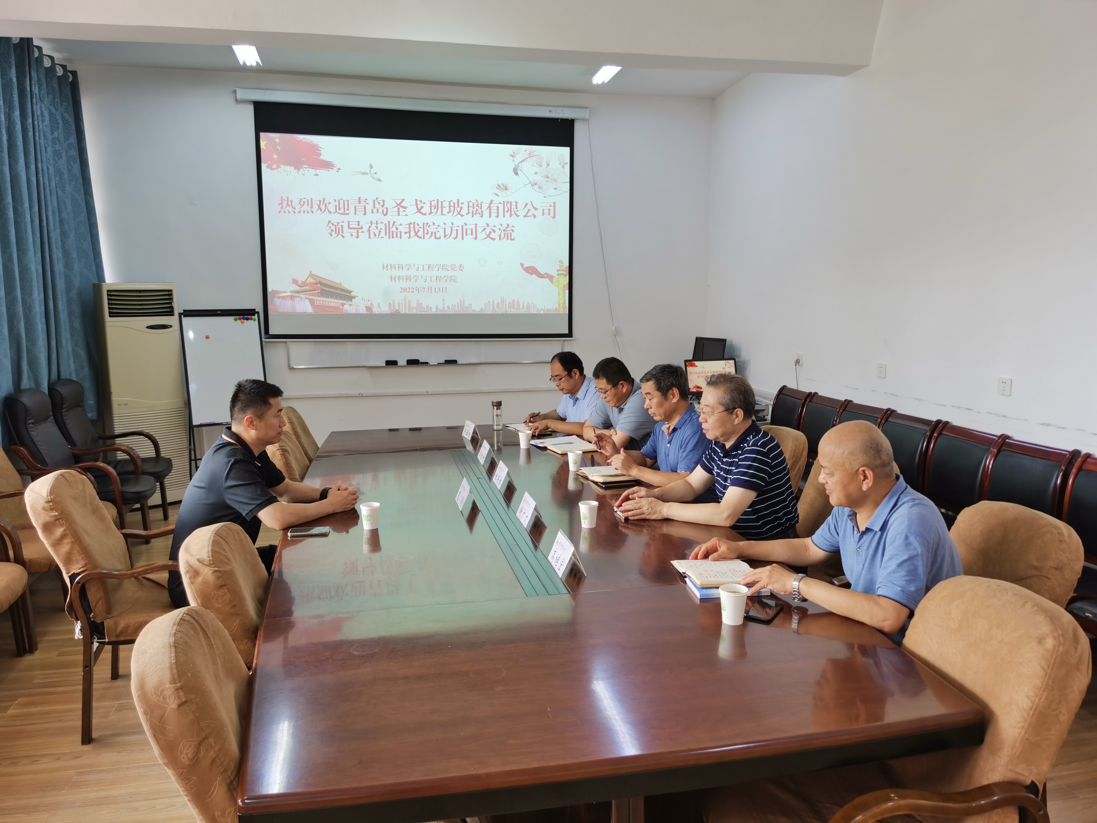 7月13日下午,青岛圣戈班玻璃有限公司惠钧总经理莅临公司访问交流,公司领导班子成员参加座谈会并陪同参观。