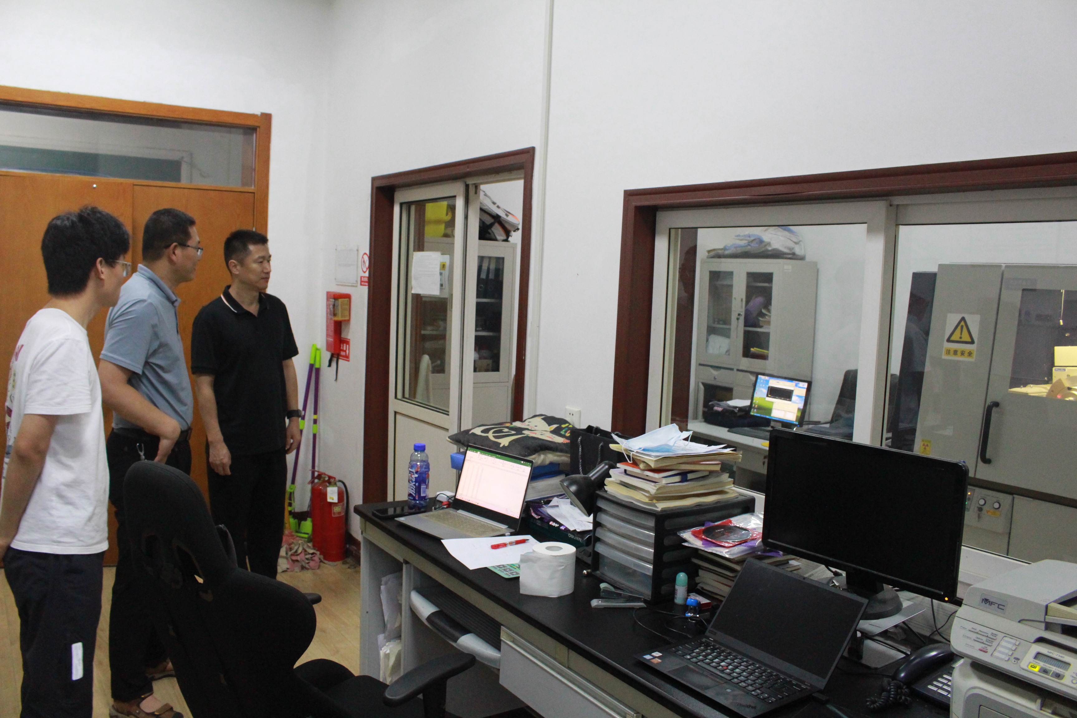 会后,惠钧总经理在公司领导、相关负责人的陪同下,参观了公司虚拟仿真实验室、大型仪器设备实验室、高清录播室等,并在公司楼前合影留念。