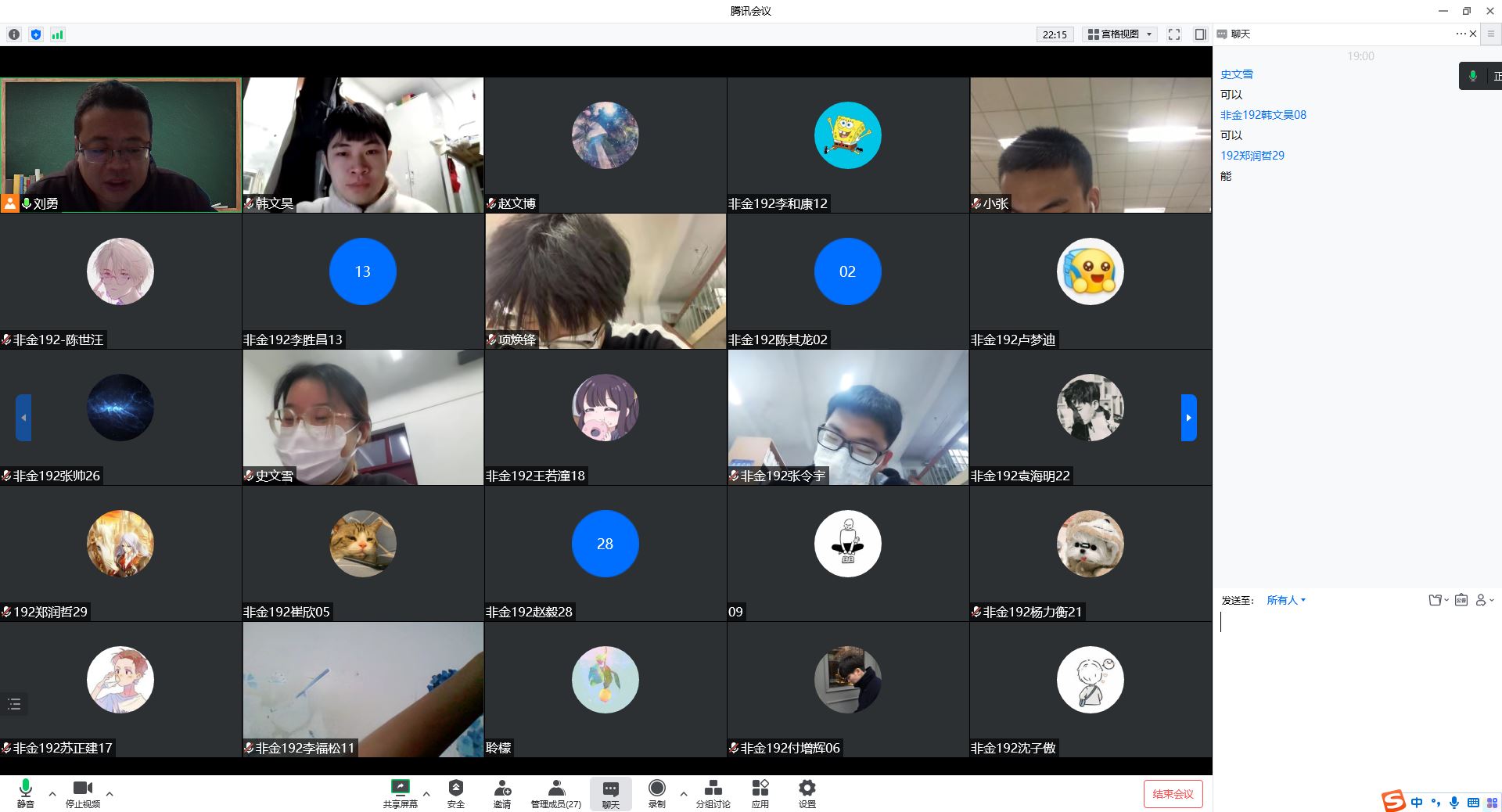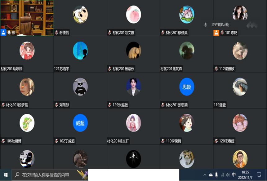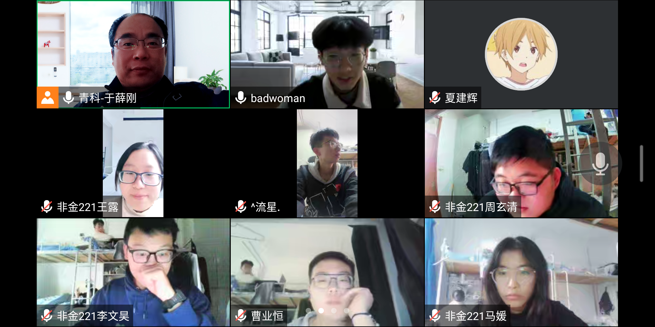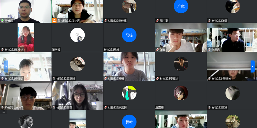 新生年级班主任针对新生适应性问题及疫情防控应对问题开展,中高年级本科生班主任、导师针对员工们关于考研以及就业的相关问题展开,研究生导师针对研究生的科研实验进度等给大家做了详细的指导说明,还有的老师利用线上平台开启了一场别开生面的“实验组会”。