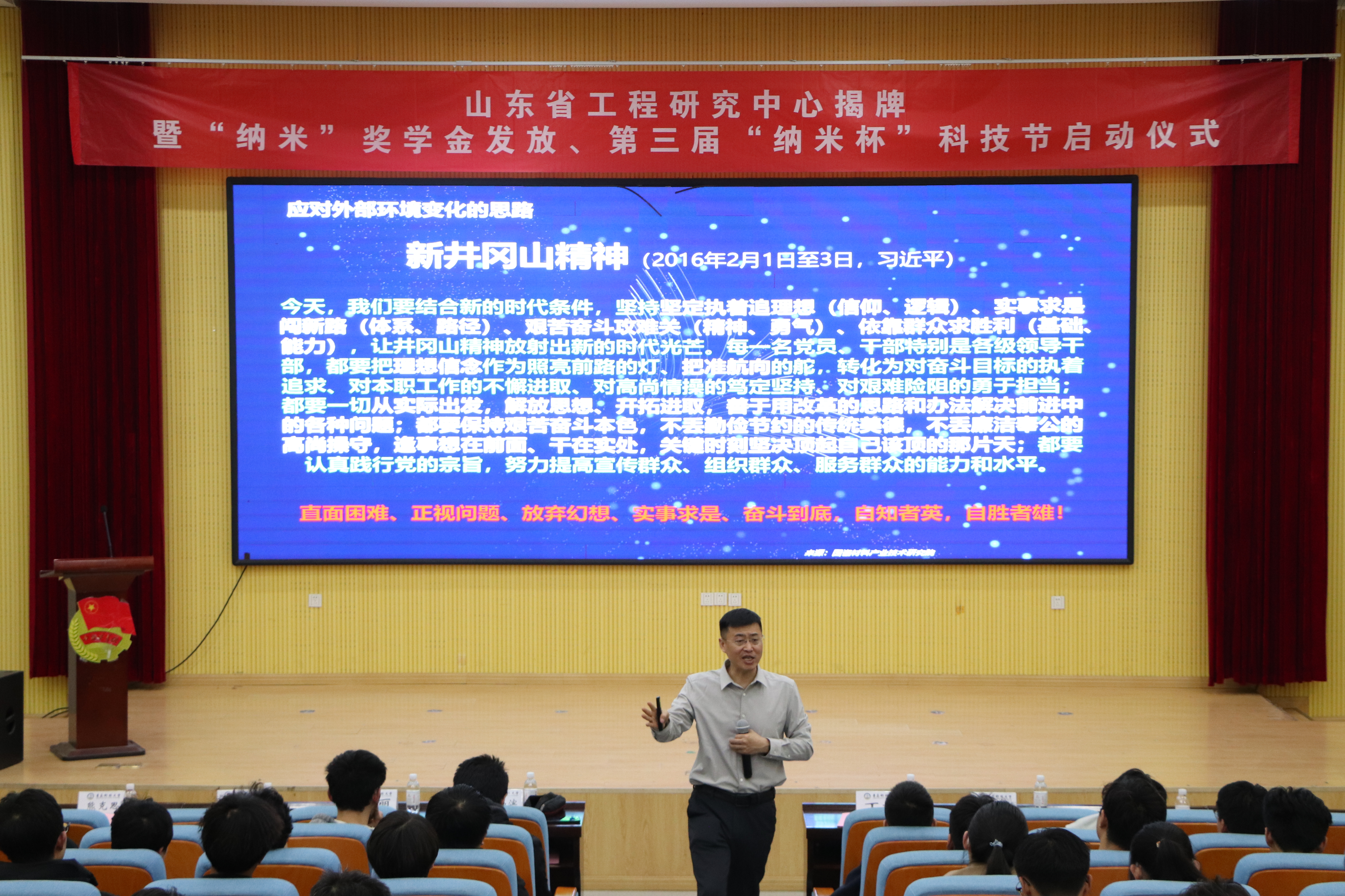仪式上,宋锡滨还为参会师生作了题为《新材料产业发展现状及未来趋势》的专题学术报告。他从新材料产业基本认知和整体概况、新材料产业发展现状和差距情况、纳米技术的基本认知和整体概况、新材料产业未来趋势和发展建议四个方面展开,通过鲜明的事例,阐明了当前我国新材料领域存在的差距和未来的出路,鼓励公司师生在学科领域内不断深耕材料行业和新材料产业,加强成果转化和项目合作,发扬材料人精神,不断培养精益求精、创新发展的匠人精神。