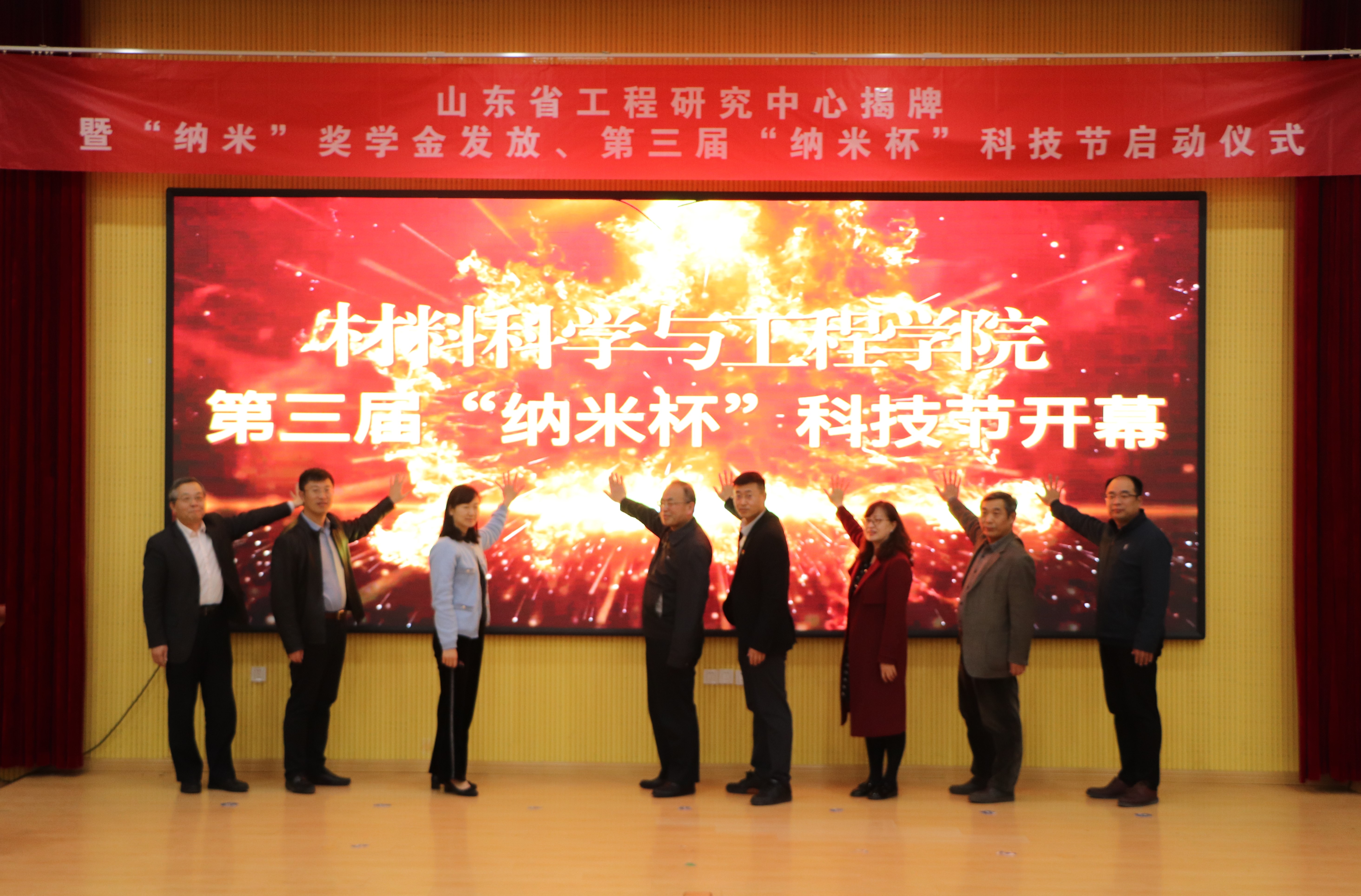 4月25日,公司在尚舜学术报告厅举行山东省工程研究中心揭牌暨“纳米”奖学金发放、第三届“纳米杯”科技节启动仪式。公司党委常委、副董事长丁林出席仪式并致辞,山东国瓷功能材料股份有限公司董事、首席技术官宋锡滨、青岛圣戈班玻璃有限公司人力资源部经理顾晓娟、员工工作处处长王丽、校团委书记刘跃宁、公司党委书记杜芳林、bw西汉姆联经理谢广文、bw西汉姆联副经理于薛刚、公司员工会常副秘书长熊克思及企业、师生代表等参加仪式。仪式由公司党委副书记兼副经理葛夫国主持。