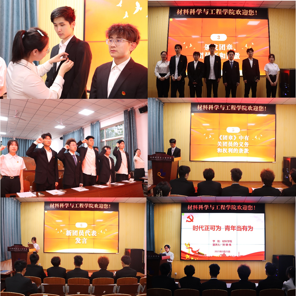 在庄严的国歌声中,入团仪式正式开始,首先团委老师刘爽宣读了新发展6名团员名单,并依次为新团员配发团章、佩戴团徽。之后在优秀团员周晓彤带领下,新团员面向团旗、举起右拳庄严宣誓。入团介绍人葛博涵宣读了《中国共产主义青年团章程》中有关团员各项义务与权利的条款。新团员代表马琦和优秀团员代表刘晓伟依次发言,马琦表示在以后的校园学习生活中会树立崇高的信念,奋发进取,严格要求自己,努力做一名优秀共青团员;刘晓伟通过讲述不同时代青年的故事,鼓励新团员时代正可为,青年当有为,要以实际行动贯彻落实党的二十大精神,传承和发扬“艰苦创业,不断创新”的纳米精,努力成为堪当民族复兴重任的时代新人。