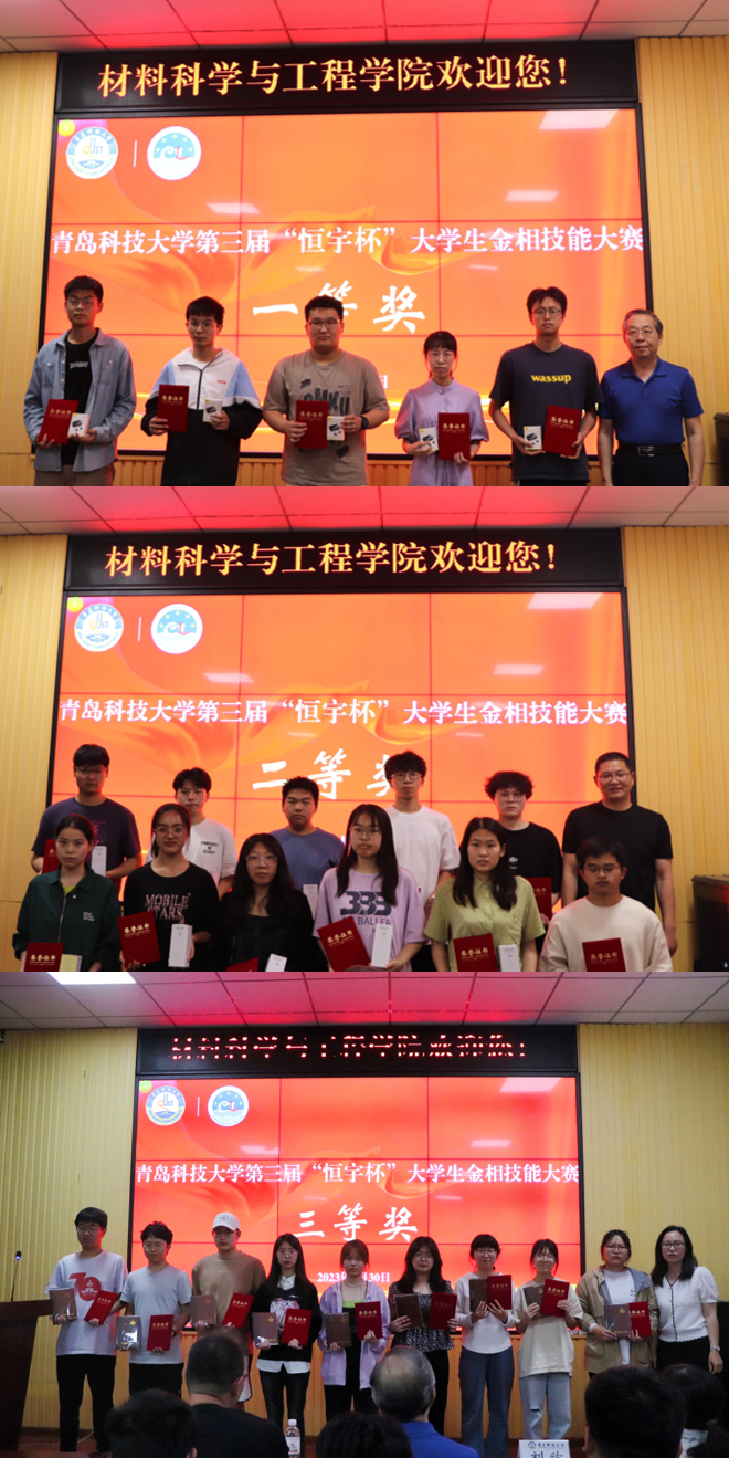 颁奖仪式上,金属材料工程教研室教师刘欣宣读了获奖名单,bw西汉姆联经理谢广文、bw西汉姆联副经理李桂村、金属材料工程教研室主任孙瑞雪分别为获得一、二、三等奖的选手颁奖。