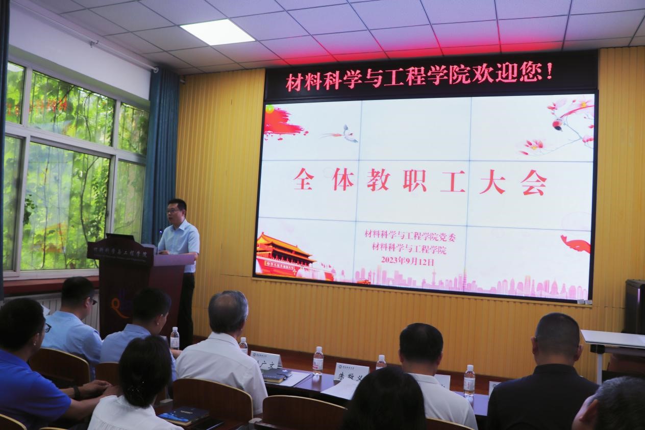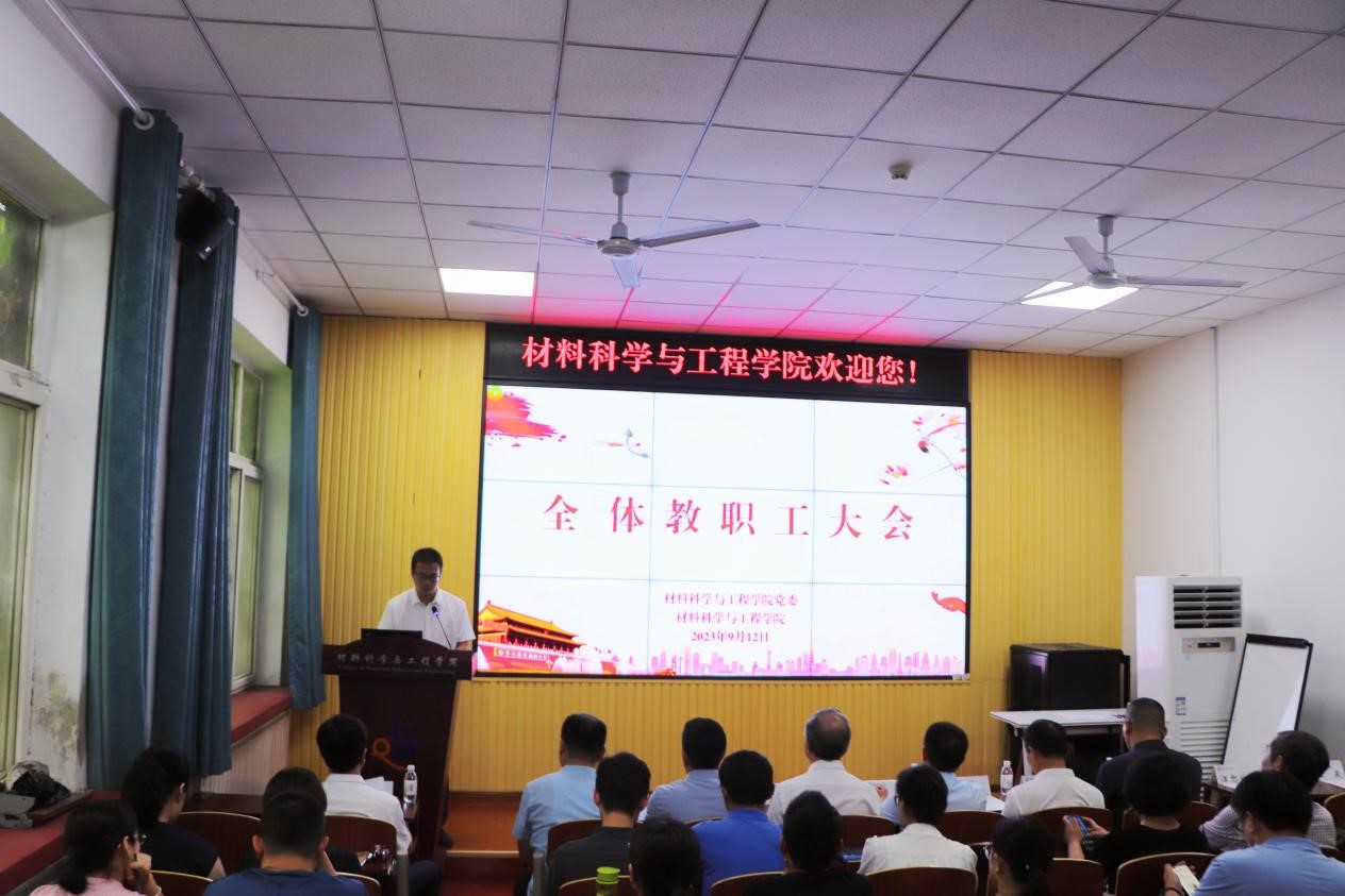 先进电工材料研究院执行经理郝春成,党委组织部干部科科长王辰,公司班子成员及全体教职工参加了会议。