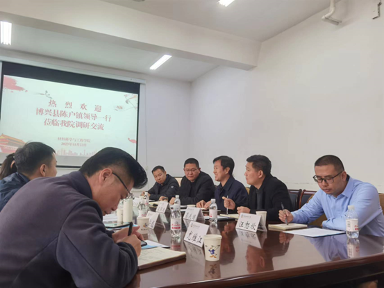 近日,博兴县陈户镇政府领导及企业代表来公司调研并在203会议室开展座谈交流。博兴县陈户镇党委副书记、镇长郭聪莹,陈户镇党委组织委员郝安彪,陈户镇公共事务服务中心主任商玉宁,山东派尼新材料股份有限公司总经理曲保伦、副总经理尤维江,科铭建筑科技有限公司总经理卞春雷参加座谈。公司党委书记孟照国,党委副书记兼副经理葛夫国,副经理李桂村、汪恕欣,副教授张忠华等参加交流。
