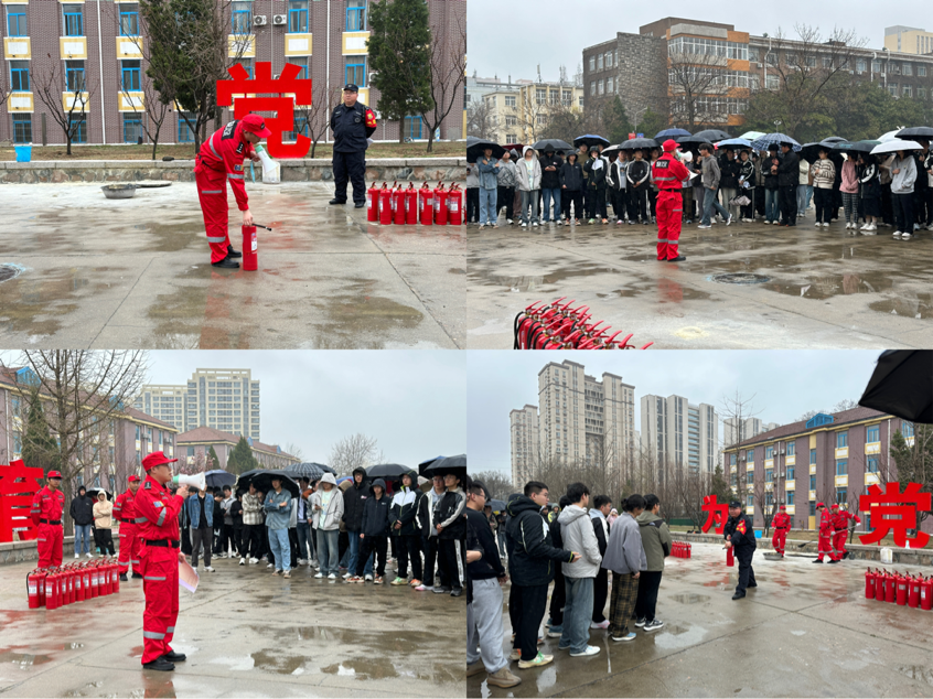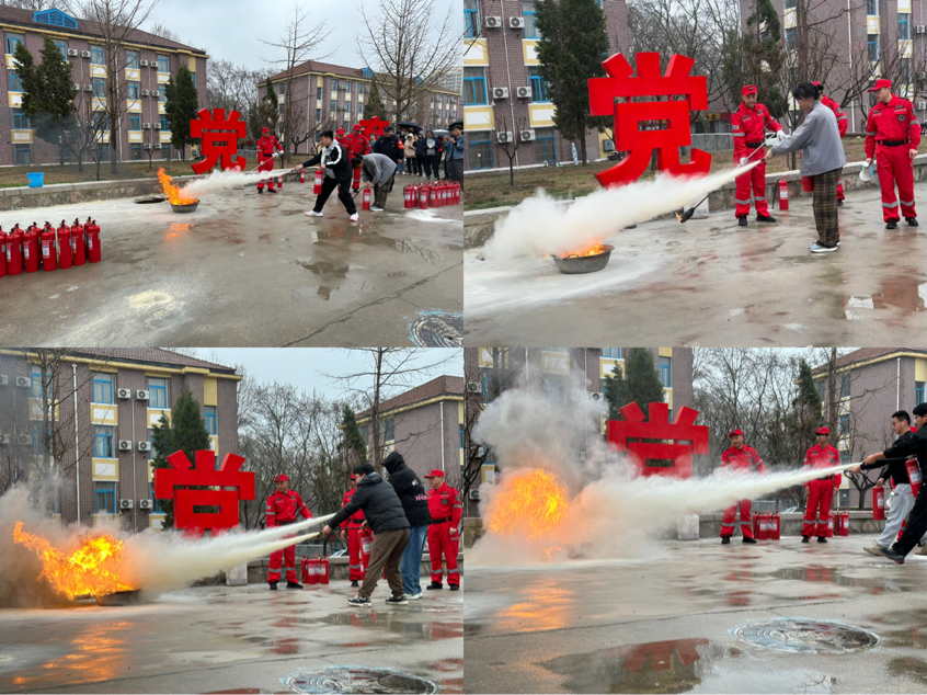 逃生演练结束后,保卫处消防科老师向参演同学介绍了消防安全知识,演示了灭火器的使用和维护方法及注意事项,并指导员工们使用灭火器,同学们规范、快速地完成了灭火过程。
