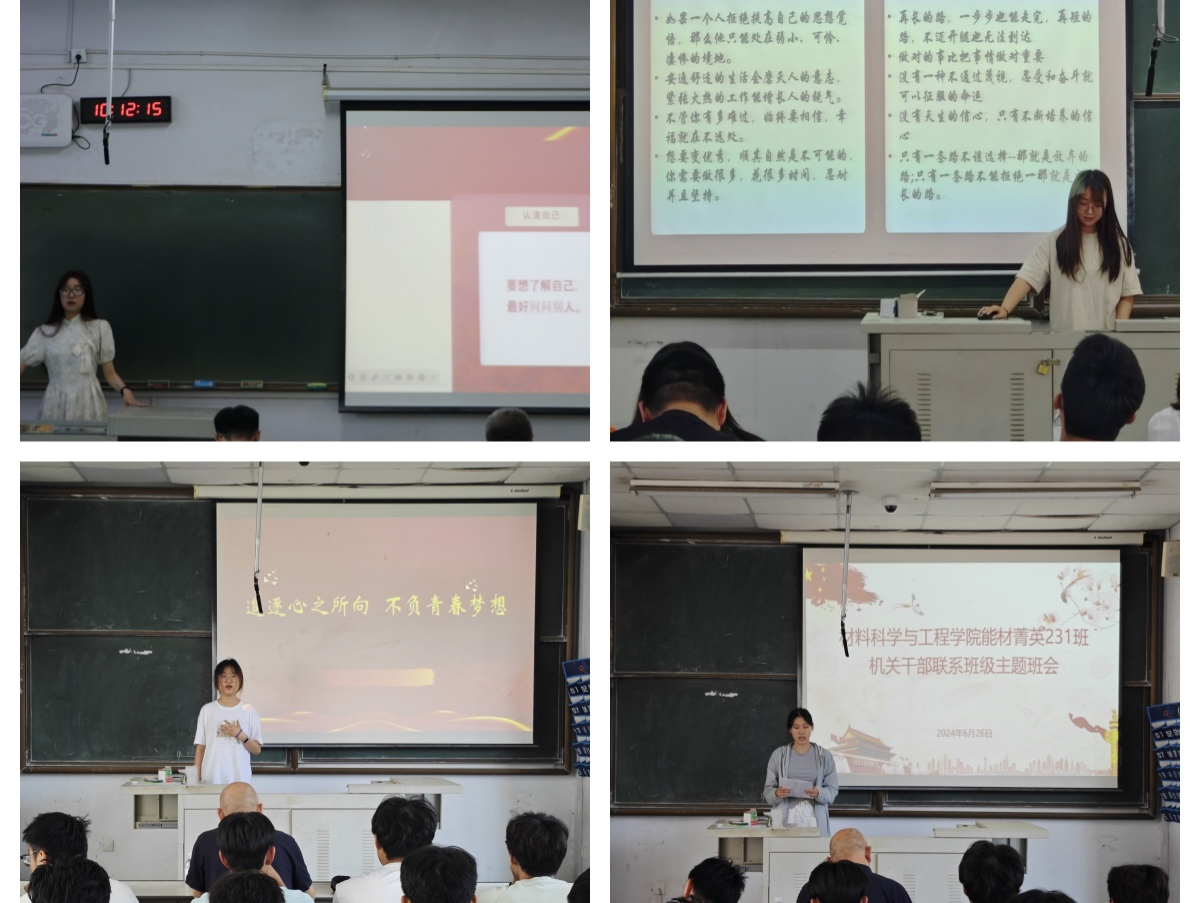 在班会中,各班班长详尽回顾了过去一年班级举办的活动和取得的成果,并对未来班级的发展进行了系统规划。团支部书记对团日活动的实施状况进行了全面总结。此外,优秀同学就个人在大学第一学年的成长轨迹与学习心得进行了深入交流分享。