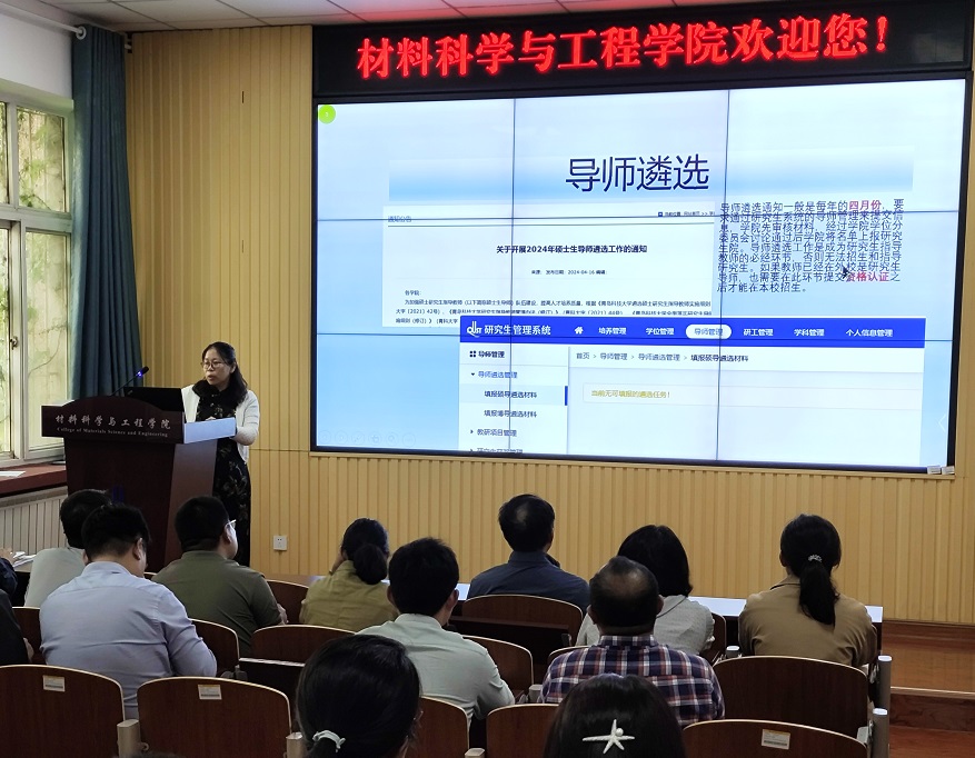 随后,教学科研办公室主任孙萍萍详细讲解了研究生导师工作的重要时间节点和操作流程,强调导师需及时掌握公司及公司的相关研究生管理文件,并就近年来常见的工作问题进行深入解读,帮助导师们更好地应对和解决实际工作中的挑战。