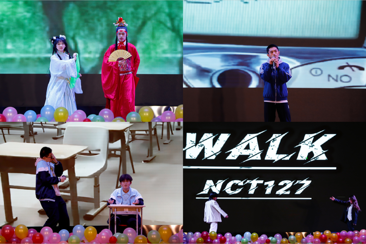 在第二篇章“踔厉奋发向未来”中,员工所表演的朗诵《歌颂祖国》字字句句沁润青年们的拳拳之心;舞蹈《雅韵》以《红楼梦》为题彰显了上下五千年的强大的文化自信与文化底蕴;《walk》舞蹈展现青春活力,肆意挥洒在观众们眼前;《考试还剩十五分钟》展现了考试过程中幽默诙谐的一幕幕画面。