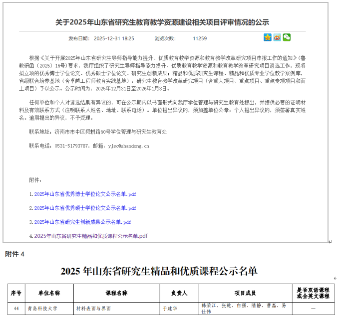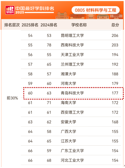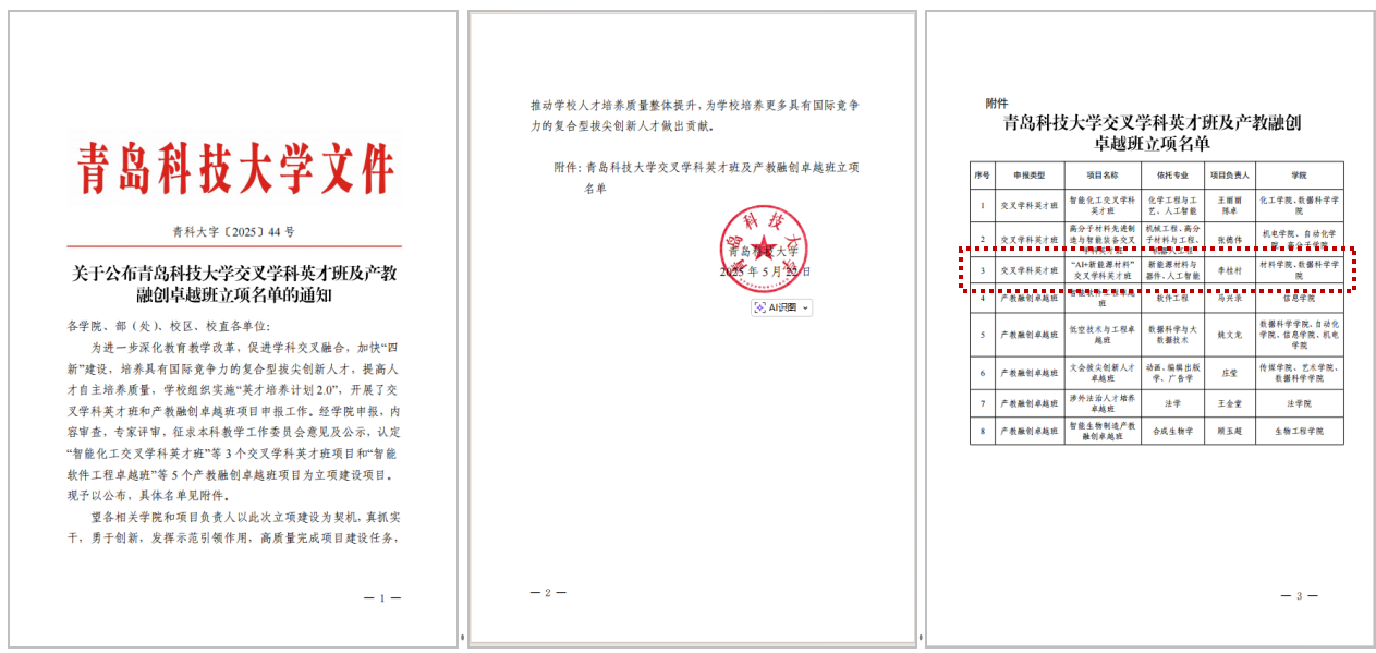 不断强化材料科学与工程山东省优势特色学科和青岛市产教融合团队建设;材料科学学科全球ESI排名升至1.195‰(去年同期1.448‰),材料科学与工程学科软科排名升至60(前30%),较去年上升了3个名次;2人入选山东省泰山青年学者专家,1人获评青岛市拔尖人才;新增认定2个山东省工程研究中心,青岛市纳米材料工程技术创新中心顺利通过绩效评估。