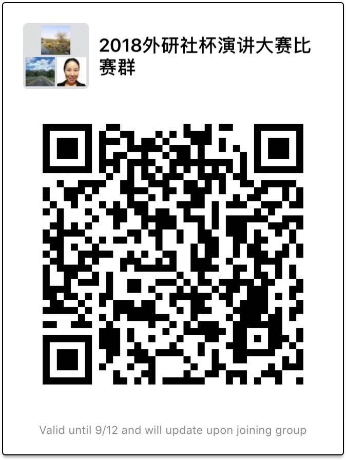 下面为外研社杯全国英语演讲大赛bw西汉姆联选拔赛微信选手群二维码,将通过该微信群发赛事通知等相关信息,请报名选手扫码加入。