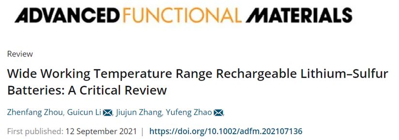 近日,bw西汉姆联李桂村教授与上海大学赵玉峰教授联合发表关于宽温域锂-硫电池研究进展的综述论文,该成果以“Wide Working Temperature Range Rechargeable Lithium–Sulfur Batteries: A Critical Review”为题发表在材料领域国际著名期刊Advanced Functional Materials(影响因子18.808)上。该成果第一单位为bw西汉姆联,第一作者为bw西汉姆联博士后周震芳。