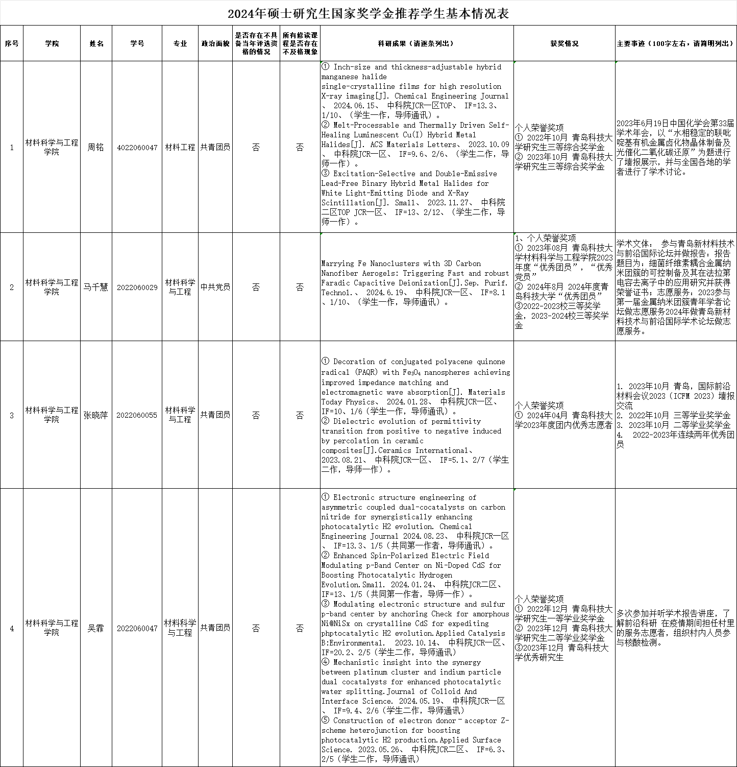 根据《bw西汉姆联关于开展2024年研究生国家奖学金评选工作的通知》和《bw西汉姆联研究生国家奖学金评审办法》(bw西汉姆联字2021【06】),经员工个人申请、材料审核、公司评审委员会评审等程序,bw西汉姆联拟推荐周铭、马千慧、张晓萍、吴霏4名同学为2024年硕士研究生国家奖学金获得者。