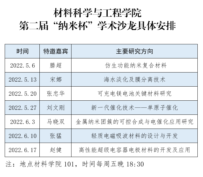 在中国共青团成立100周年和党的第二十次全国代表大会即将召开之际,公司将继续以“艰苦创业,不断创新”的纳米精神为引领,深入落实员工创新创业教育工作,继续以“纳米杯”科技节为抓手,营造良好的学术和科技创新氛围,培养老员工学术思想、激发科研热情,拓宽同学们的认知视野,提供师生之间的交流机会,为莘莘学子搭建培养学术创新能力和实践能力的平台,公司在新能源材料与器件专业学术沙龙的基础上,优化和完善学术沙龙的内涵,现举办第二届“纳米杯”学术沙龙。现将本届学术沙龙具体事项通知如下: