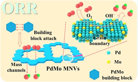 图2可控合成PdMo金属烯纳米脉络高效催化氧还原反应机理图