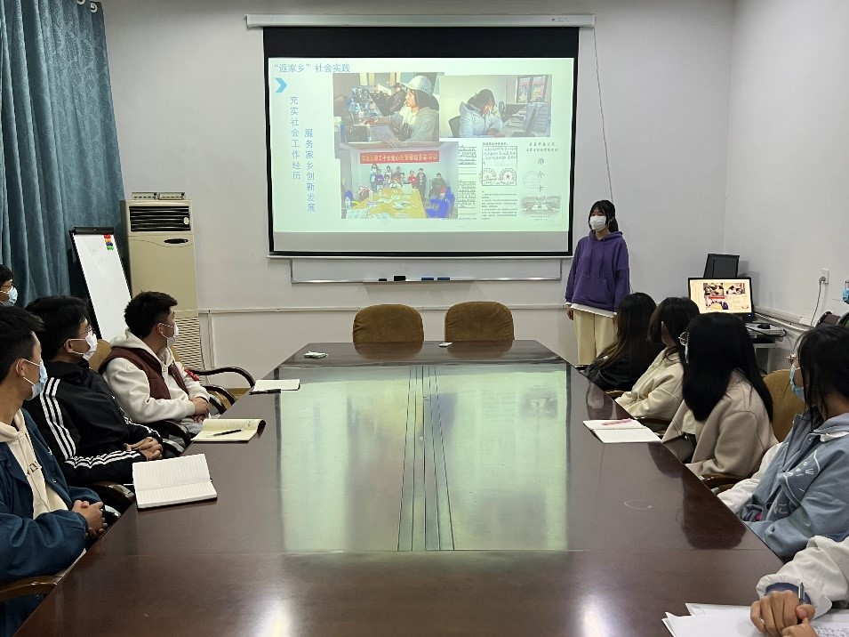 会上,寒假社会实践优秀个人代表分别围绕“青鸟计划”、“返家乡”社会实践、“党的十九届六中全会精神宣讲”等实践内容,分享自己在假期回到家乡、走进基层、服务社会的心得体会,交流自己在寒假社会实践活动中获得的收获和感悟,充分展现了材料学子的社会责任感和良好的青年形象,也为2022年暑期“三下乡”社会实践工作的开展提供了宝贵经验。