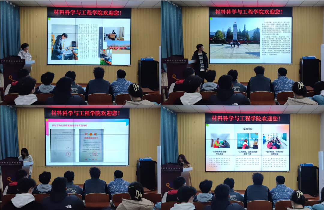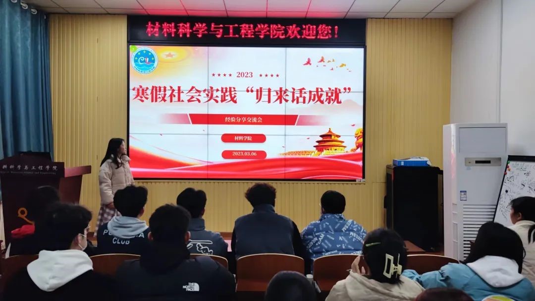 会上,寒假社会实践优秀个人代表分别围绕“青鸟计划”、“返家乡”社会实践、春运“暖冬行动”、学习红色事迹等实践内容,分享自己在社会实践中帮助他人、回到家乡、走进基层、服务社会的心得体会,交流自身在社会实践中获得的收获与感悟,展现了材料学子的青春活力和富有社会责任感的良好社会青年形象,也为低年级材料学子们今后参加社会实践提供了宝贵经验。