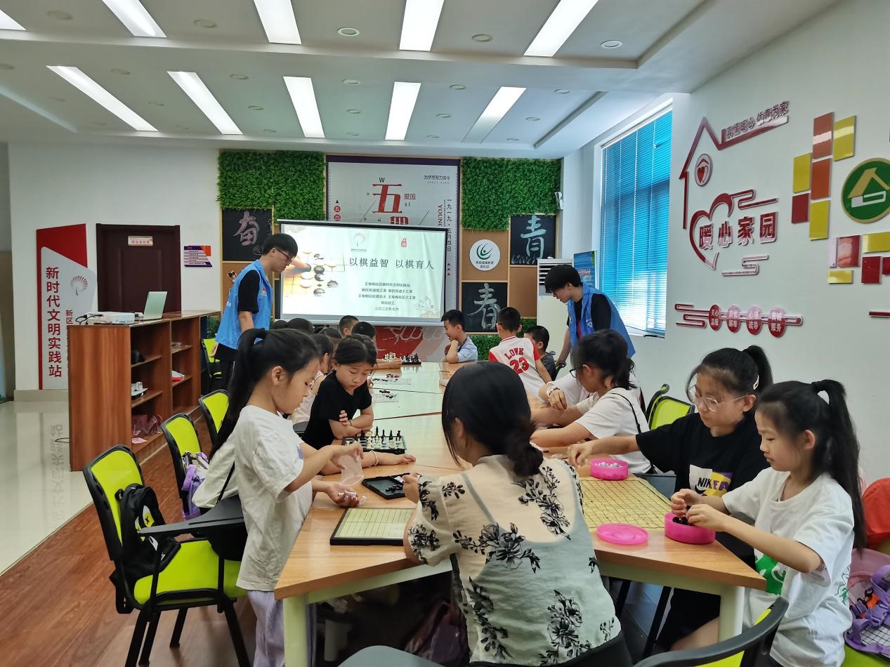 作为中国传统文化的瑰宝,中国棋类多种多样,不仅具有悠久的历史和文化底蕴,更是一种培养孩子思维能力、战略思考和决策能力的优秀教育资源。7月17日,在聊城市东昌府区王卷帽社区社会实践队的成员们通过开展棋类特色课教学,希望引导员工们走进棋局世界,激发他们对智力运动的兴趣,提高思维能力和创造力。员工们积极参与,充满热情与探索的欲望。