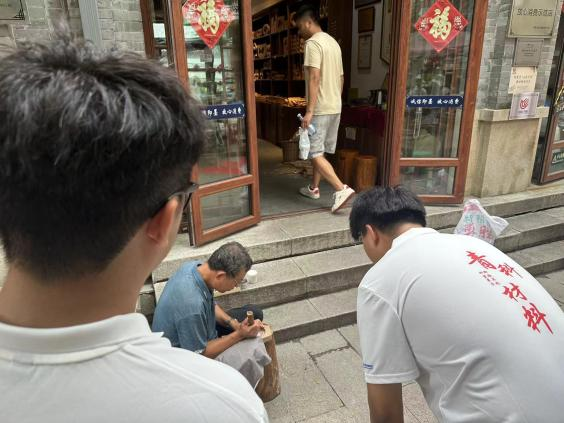 接下来,队员们抵达了即墨古城。在这里参观了非遗手艺人制作精美的模具,看到了古代科举中考生所使用的文具,捡拾了一些垃圾。古香古色的街道与楼台,承载着非遗手艺的小店,记载着千年历史的古城,在现代转型成功。悠久的历史底蕴是良好的资源,加上正确的运营,与现代人的喜好、科技相融合,形成了一种良好的乡村振兴路线。