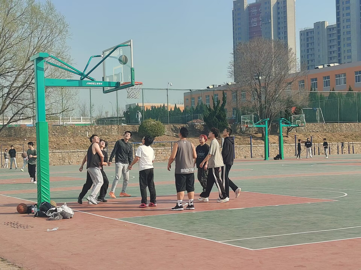 篮球场上赛事激烈,同学们奔跑、传球、投篮,攻防间尽显团队默契。欢呼呐喊中,青春激情释放,大家忘却烦恼,增进友谊,团队凝聚力与自信在运动中悄然提升。