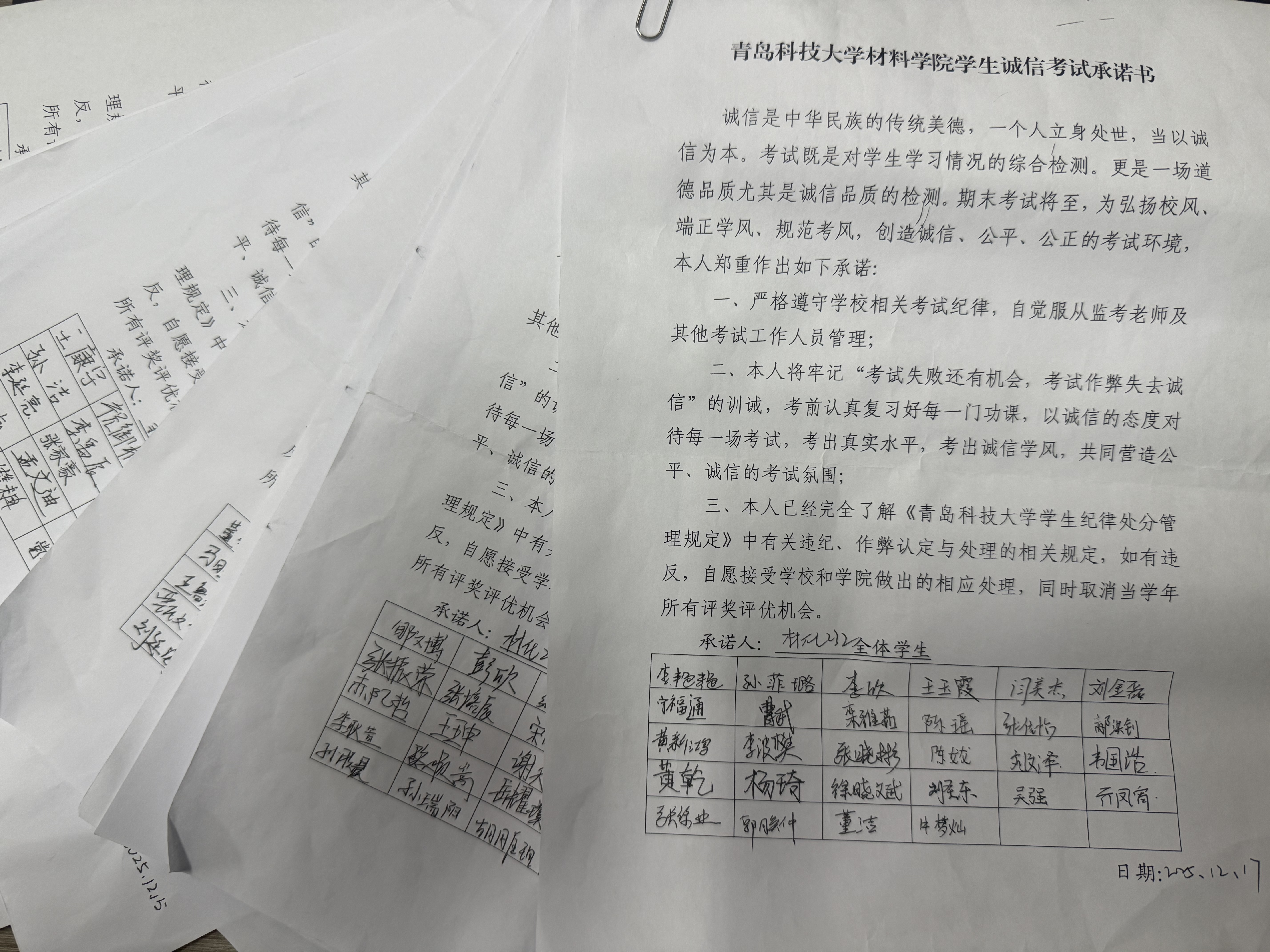 各班级班长须切实履行职责,主持召开班级诚信考试主题教育班会,将公司与公司的纪律要求传达至每一位同学,并统一组织全体同学现场签署《诚信考试承诺书》,以实际行动践行诚信诺言。
