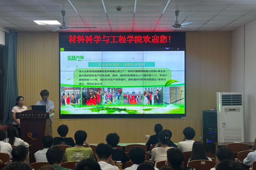 潘超超在总结讲话中对各实践团队取得的丰硕成果给予了高度肯定。他指出,今年的“三下乡”社会实践组织有力、主题鲜明、成效显著。同学们在实践中“自找苦吃”,深入基层,贴近群众,不仅深化了对国情、社情、民情的认识,锤炼了解决实际问题的能力,更在服务奉献中坚定了理想信念,升华了思想境界。他强调,此次成果汇报会不仅是对暑期实践活动的全面复盘与精彩展示,更是一堂鲜活而深刻的思想引领课与成长励志课。他希望同学们能将实践中的所见所闻、所思所悟转化为刻苦学习、勇攀科研高峰的内在动力,将继续保持深入基层、服务社会的热情,让青春在为国家、为人民的奉献中焕发出更加绚丽的光彩。