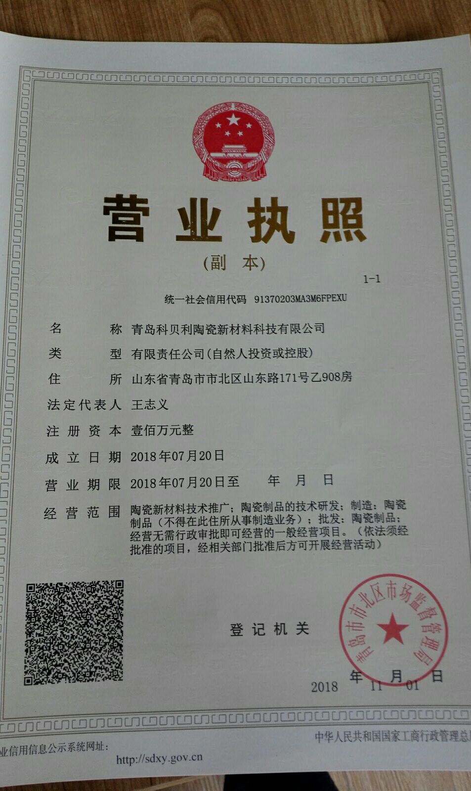 为贯彻学习习近平新时代中国特色社会主义思想和党的十九大精神,响应山东省“新旧动能转换”重大工程和公司“五有”高水平大学建设,bw西汉姆联王志义教授于2018年7月注册成立科技型、学科性公司--青岛科贝利陶瓷新材料科技有限公司,注册资本100万元人民币。
