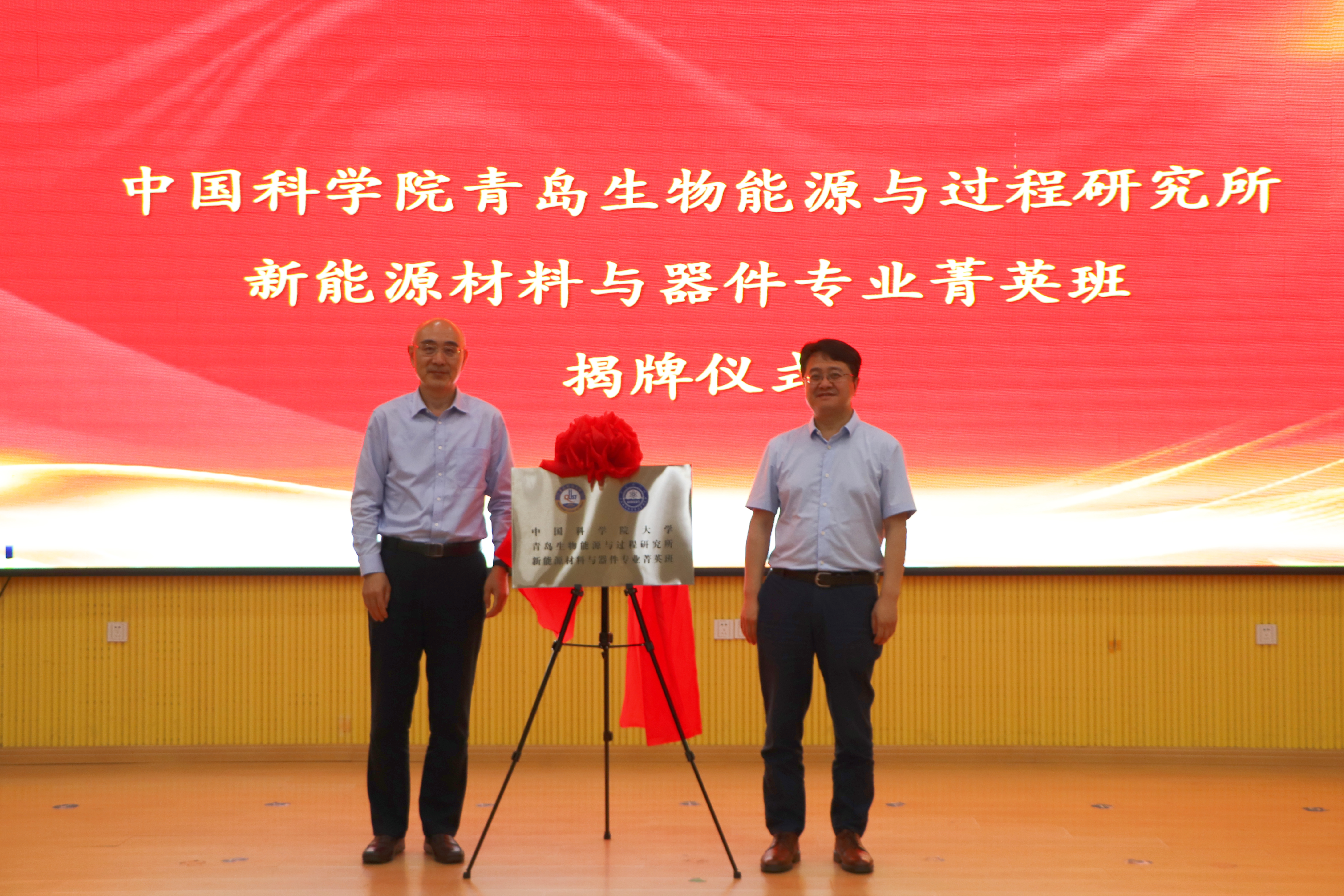 会上,陈克正、吕雪峰共同为“中国科公司青岛生物能源与过程研究所新能源材料与器件专业菁英班”揭牌。